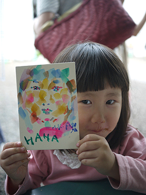 モッカが占いと、染め物とかCD売って、私がカラフルな似顔絵描いたり(オーラは見えませんが)、グッズを売ったりというスピリチュアル参加です。