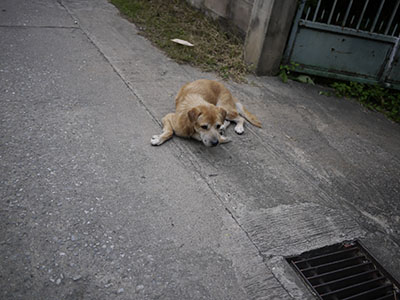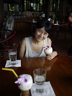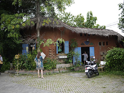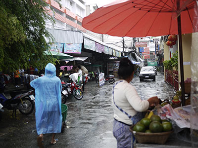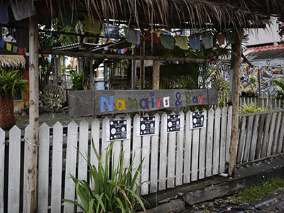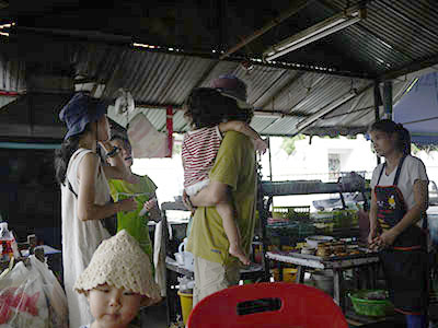サンデーマーケットで、スイカシェイクを買ってゲストハウスの方へ戻っていく。
