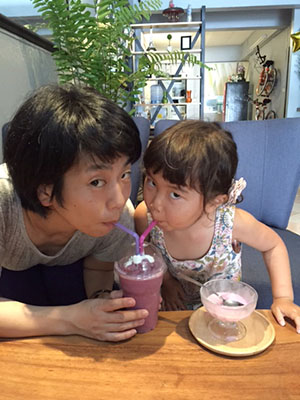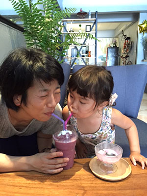 ベビーカーで千代さんが寝続けてくれて、まっつんが太郎と先に帰ってくれたので、お茶♪