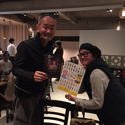 ajaraの奥さんが4人姉弟で、その中の長女がイラストレーターのすぎやまえみこさんで、その旦那さんが松田悟さんで、二人の絵を描いたり、一緒にイベントをやったりしたことあるので、久しぶりにアーティスティックで酔っ払った二人に会えて楽しかった♪