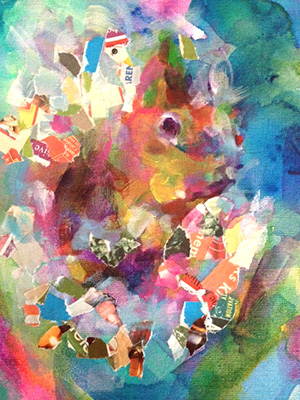 と思って、久しぶりにちぎり絵を山下清を思いながら。