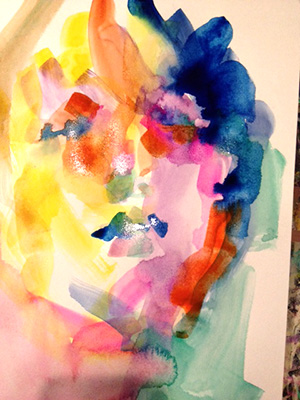 水彩絵の具で水をたっぷり使うと、乾くまでにけっこう変化します。