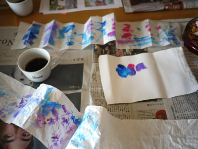 松田さんちで美濃和紙に試し描きしに行きついでに、