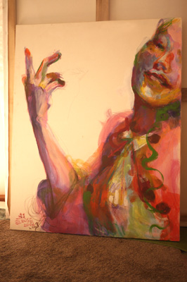 ちょっと薄暗いくらいのところの方が似合いそうな絵です。