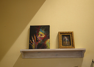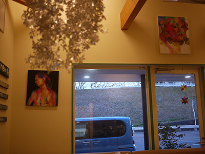 閉店後、展示し終わって写真を撮っていたら、お店で勉強をしていた娘さん(四姉妹の長女かな)が写真に入らないようにとの配慮から隠れてくれていたので(無言で)、彼女も一緒に撮っときました(私も無言で)。
