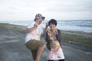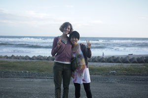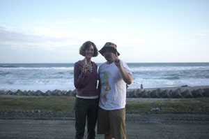 到着して、海にテンションが上がり、とりあえず記念撮影。
