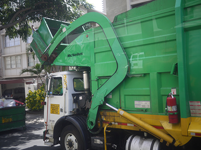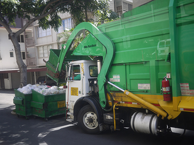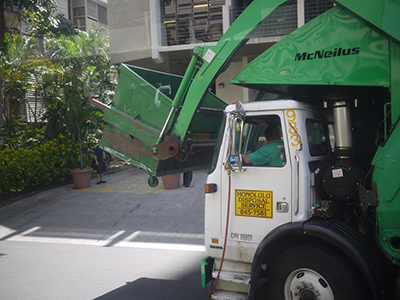帰りのバスから、ゴミ収集の場面に遭遇。